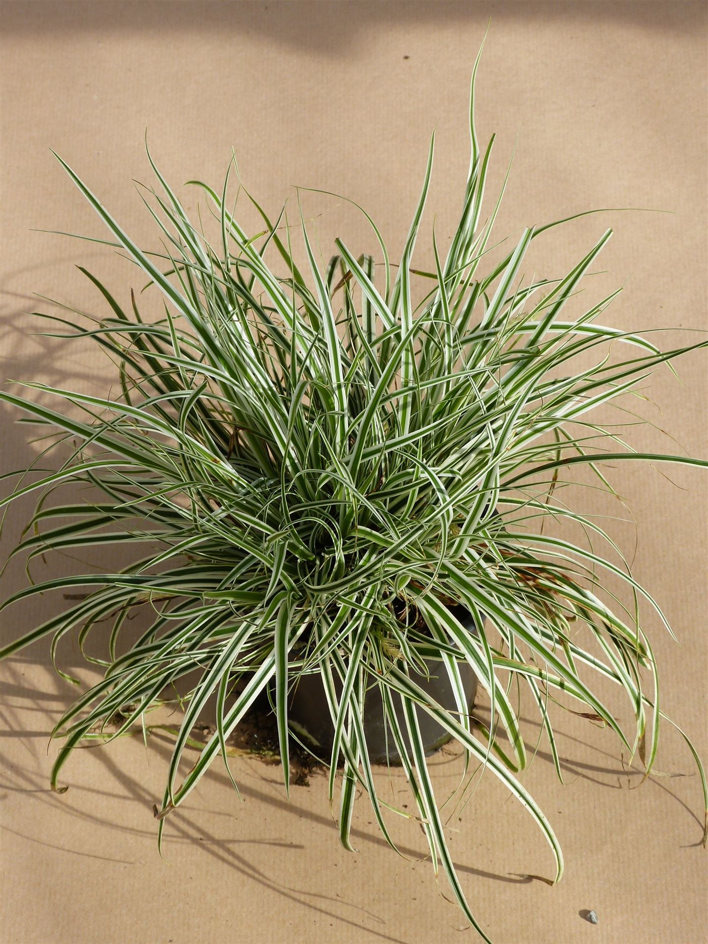 Längera Halme in sattgrün mit cremfarbenem Saum, winterhart und Wintergrün, Lieferung in 8er Mehrwegpaletten. (Pflanzenpass)